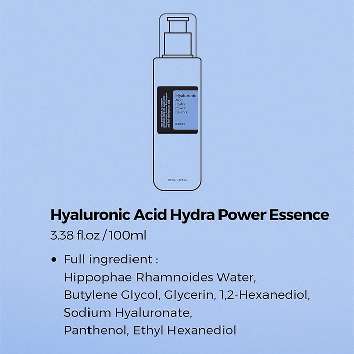 هیالورونیک اسید یک آبرسان قدرتمند است که باعث تأمین رطوبت عمیق و حفظ نرمی و شادابی در پوست میشود . اسنس هیالورونیک اسید کوزارکس حاوی 8 نوع هیالورونیک اسید خالص میباشد که باعث آبرسانی، حجیم‌شدن پوست و کاهش چروک‌های کل صورت می‌شود و از تبخیر رطوبت پوست جلوگیری میکند.این محصول با فرمولاسیون غنی از هیالورونیک اسید، قادر است تا رطوبت را به عمق لایه‌های پوست منتقل کرده و پوست را به طور مؤثر آبرسانی کند.