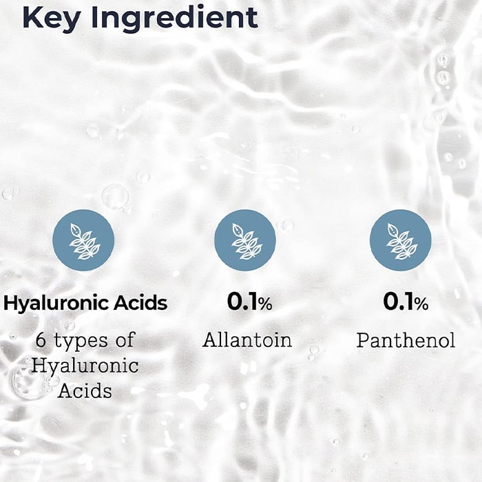 - حاوی 6 نوع هیالورونیک اسید، ویتامین B5 (پانتنول) و آلانتوئین