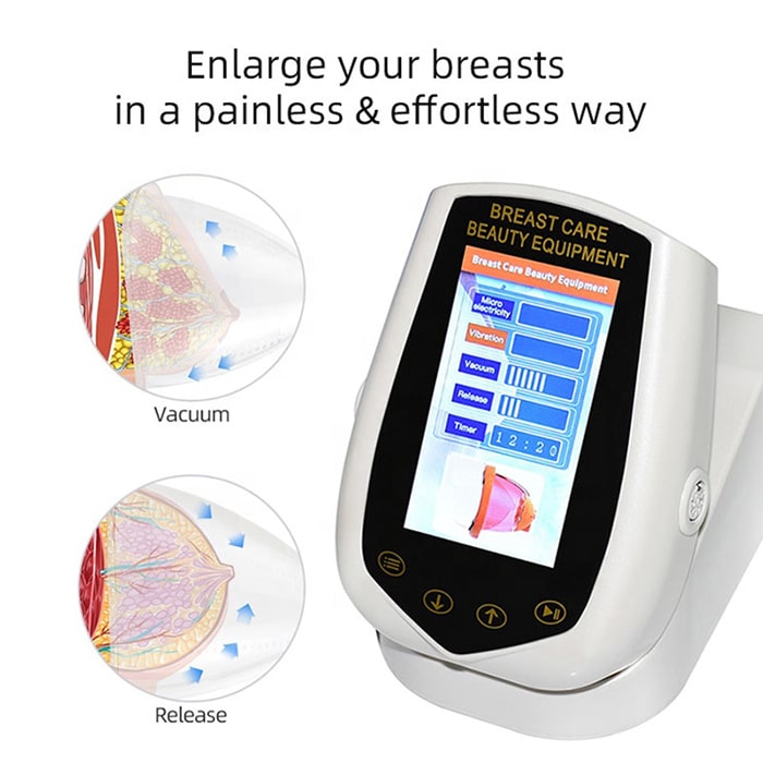 • ویبریشن : با ماساژ و لرزش جریان خون افزایش پیدا میکند و باعث تقویت بافت سینه و باسن در نتیجه افزایش حجم و ایجاد فرم عالی و رفع شل شدگی و افتادگی میشود . بعلت ماساژ سینه ها خطر ابتلا به سرطان سینه هم کاهش پیدا میکند این یکی از دلایل اصلی توجه متخصصین به این دستگاه میباشد .